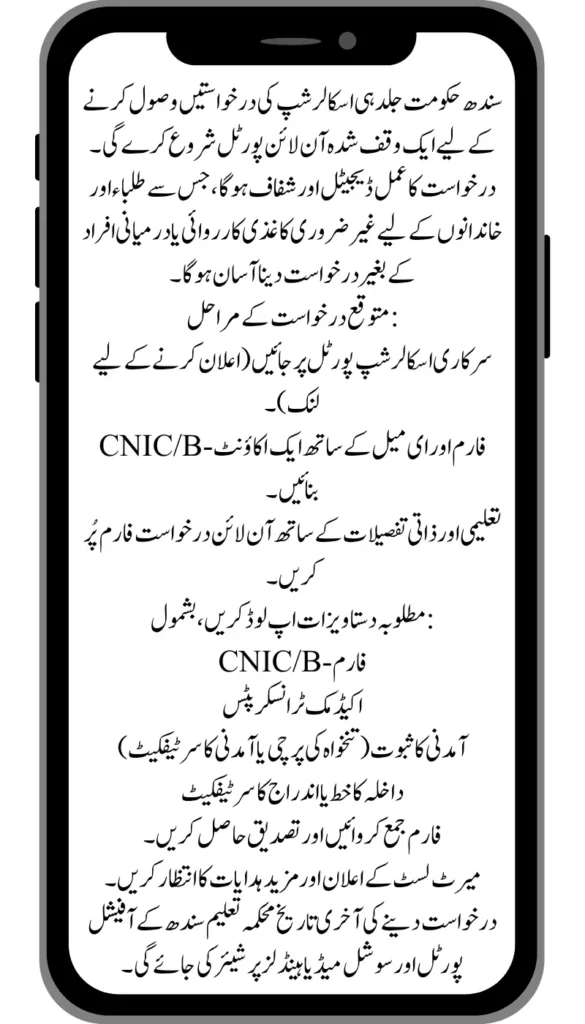 The Sindh Government will soon launch a dedicated online portal for receiving scholarship applications. The application process will be digital and transparent, making it easier for students and families to apply without unnecessary paperwork or middlemen.