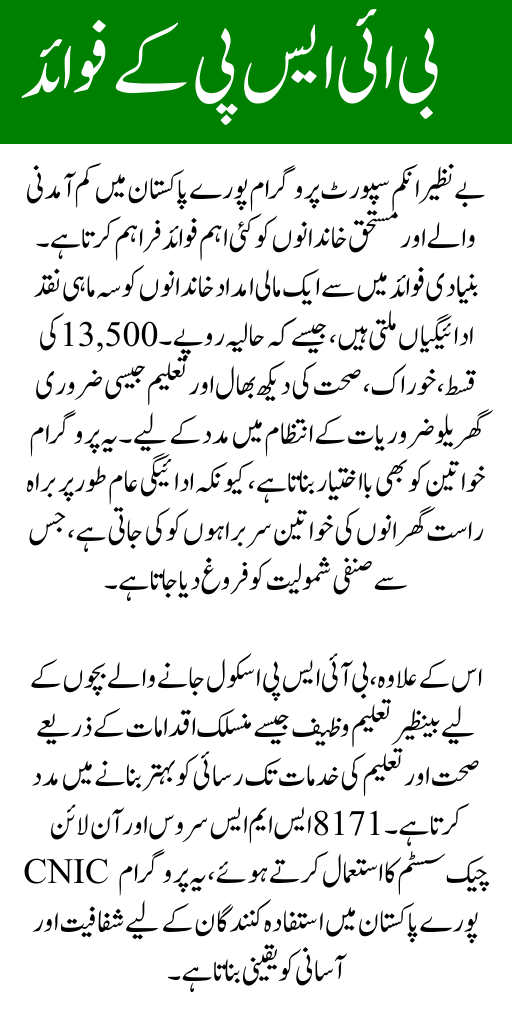 In addition, Benazir Income Support Program 13500 helps improve access to health and education services through linked initiatives like the Benazir Taleemi Wazaif for school-going children. By using the 8171 SMS service and online CNIC check system, the program ensures transparency and ease of access for beneficiaries across Pakistan.