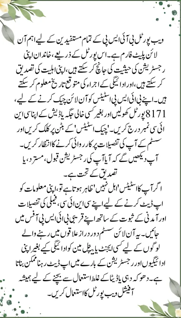 Completing your BISP registration online through the 8171 web portal is one of the easiest ways to secure financial support for your family. By using your CNIC carefully and following the official steps, you can avoid unnecessary stress and ensure that your household continues to benefit from this vital program.